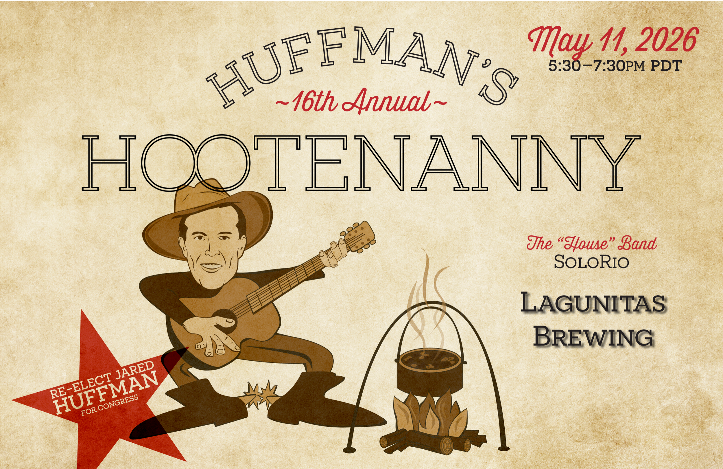 The most celebrated event each year! Amazing Hootenanny special guests in prior years have included superstars like Jamie Raskin, Kamala Harris, Adam Schiff, Hakeem Jeffries, Beto O’Rourke, and Alex Padilla. And, Huffman's Hootenanny guests enjoy live local music from our incredible “House” band SoloRio, delicious local food, Lagunitas beer, and just the right amount of politics.